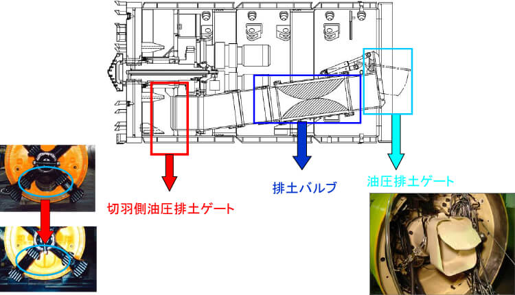 掘進機に設置される排土ゲート(切羽側・機内側)
